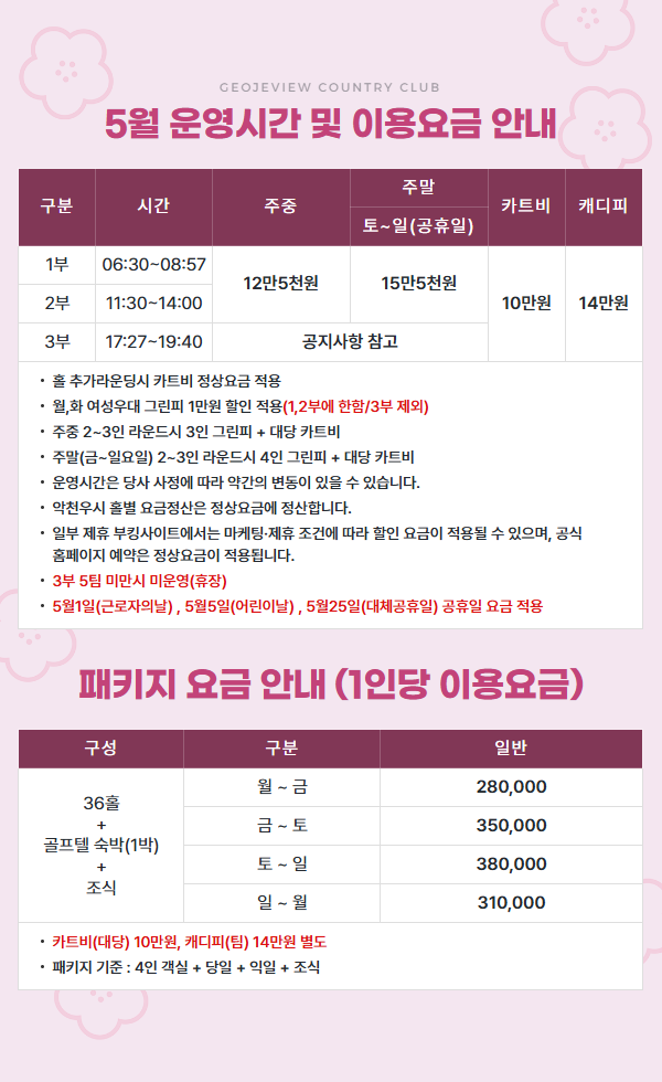5월 운영시간 및 이용요금 안내